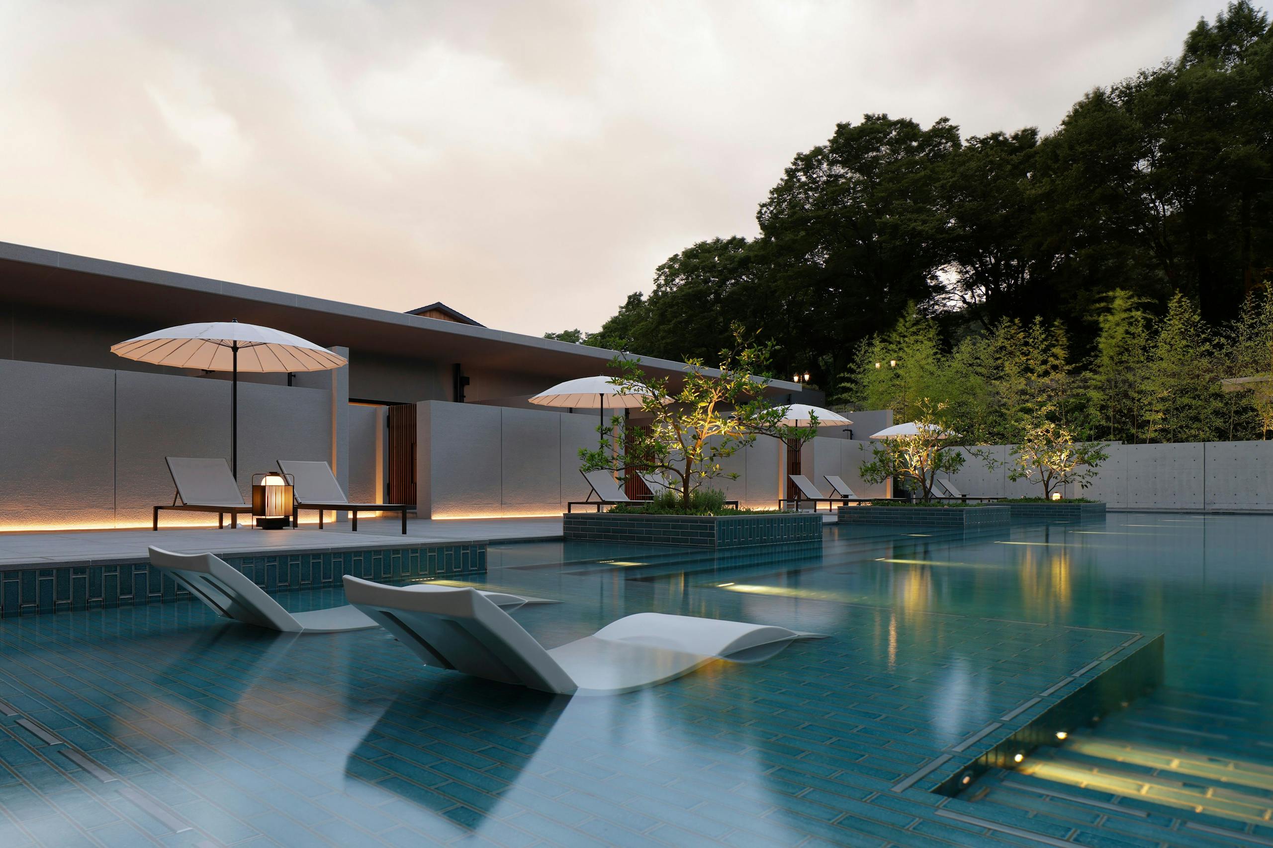 ROKU KYOTOといえばのサーマルプールは天然温泉を利用しており、