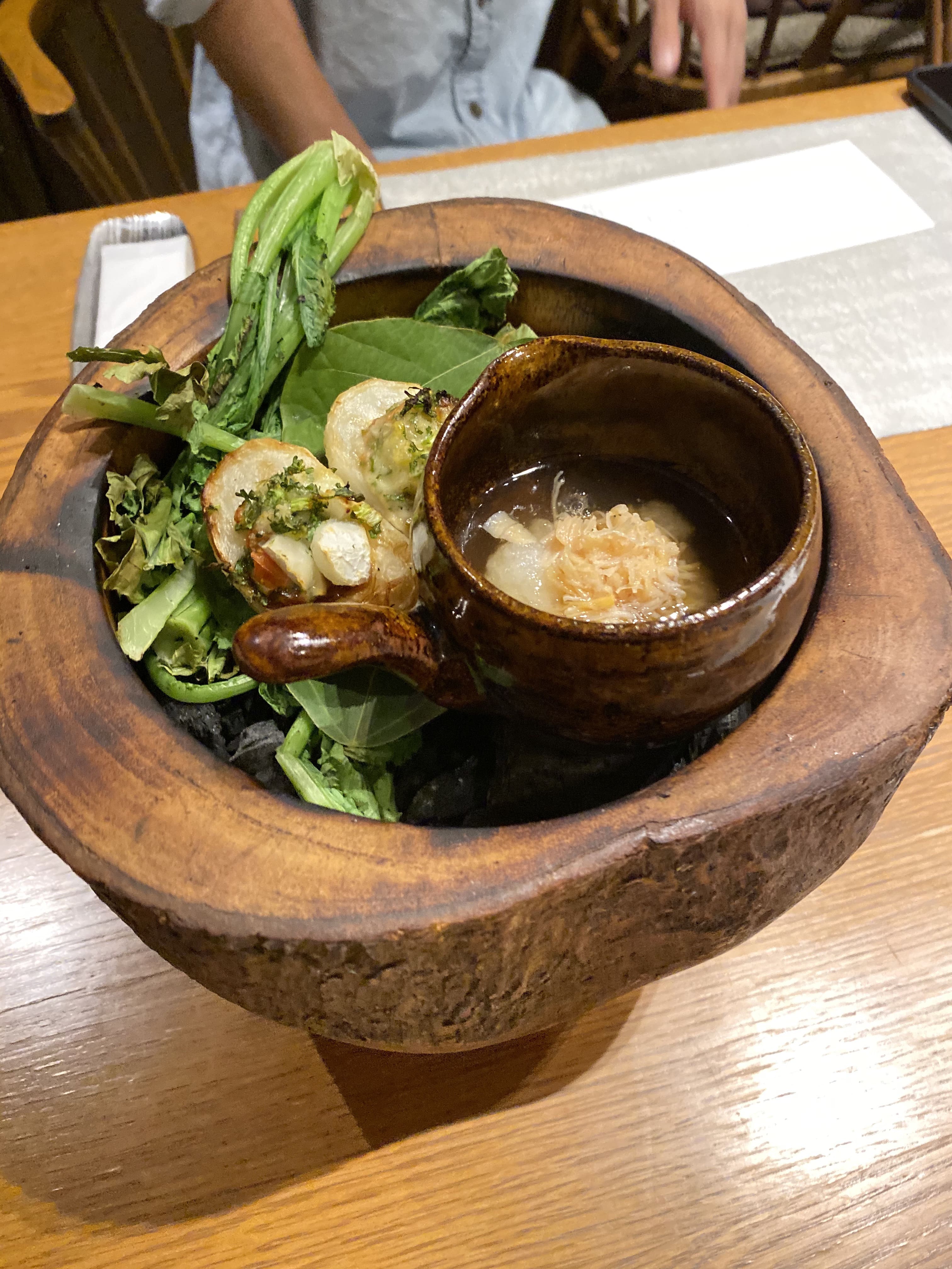 食材はできるだけ地元産を使用、調理に薪や溶岩石を使い、熱々の状態で提供してくれます。使われている食材が多く、メニューを見て、説明を聞いているだけで楽しかったです。