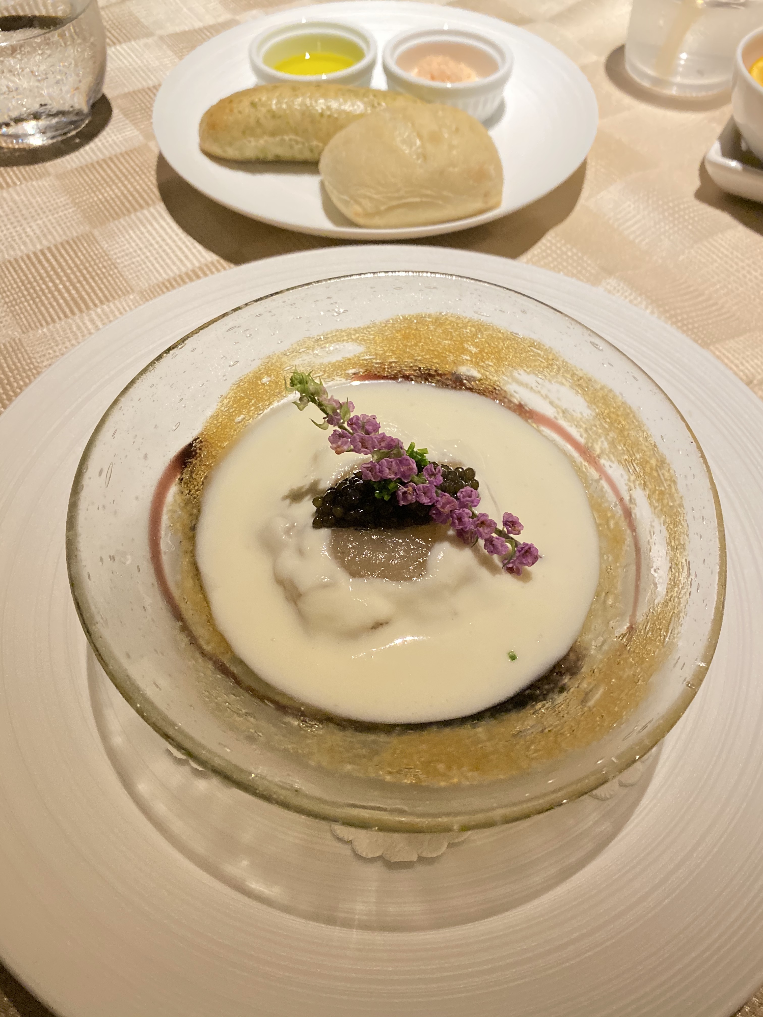 私が大好きなひらまつのパン、ここではクロワッサン、食パン、丸パン、パンオショコラの4種類でした。サクサク美味しい〜💖