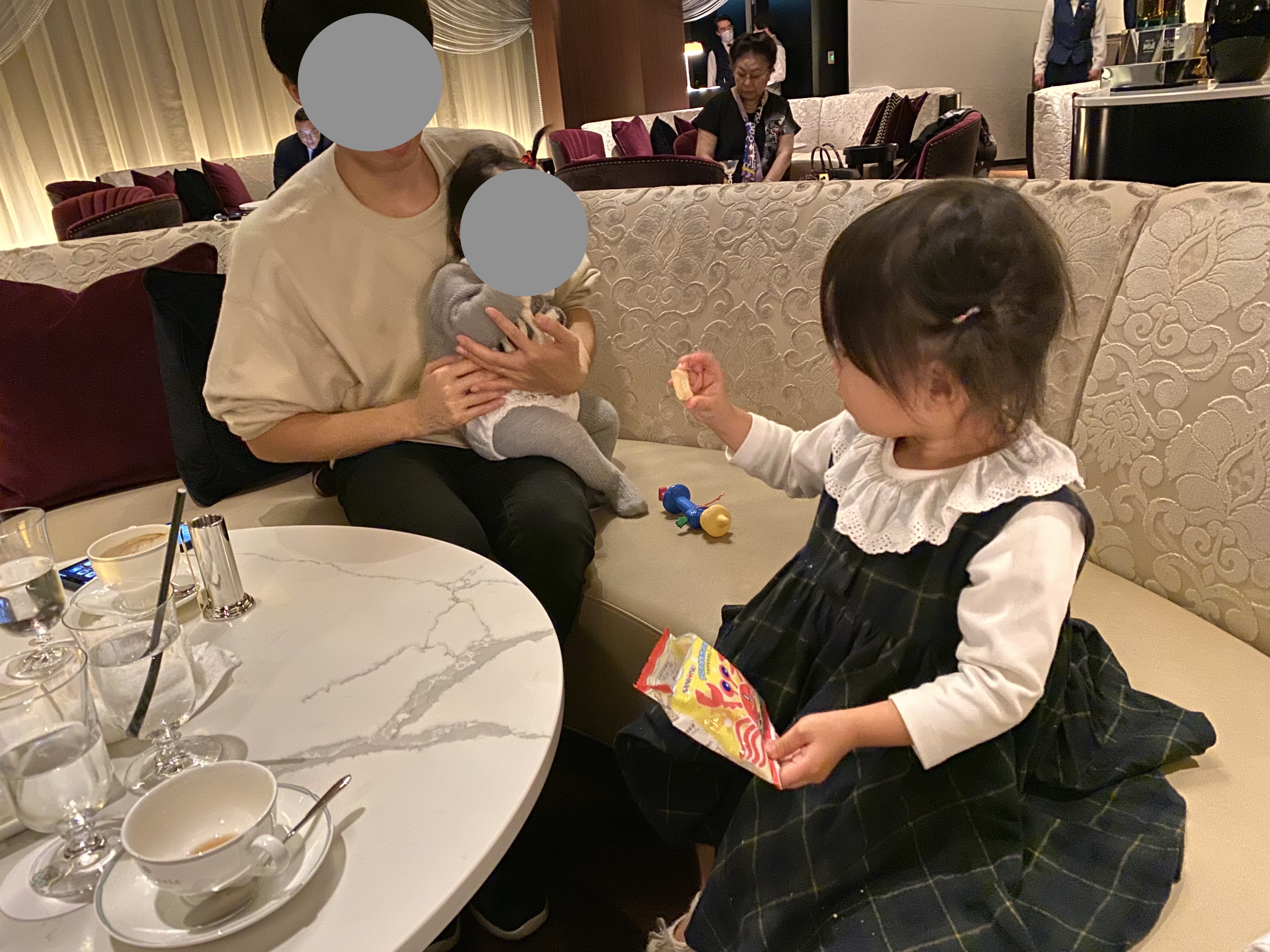 私達が食事をしている間は次女はここで待っていてもらいました。