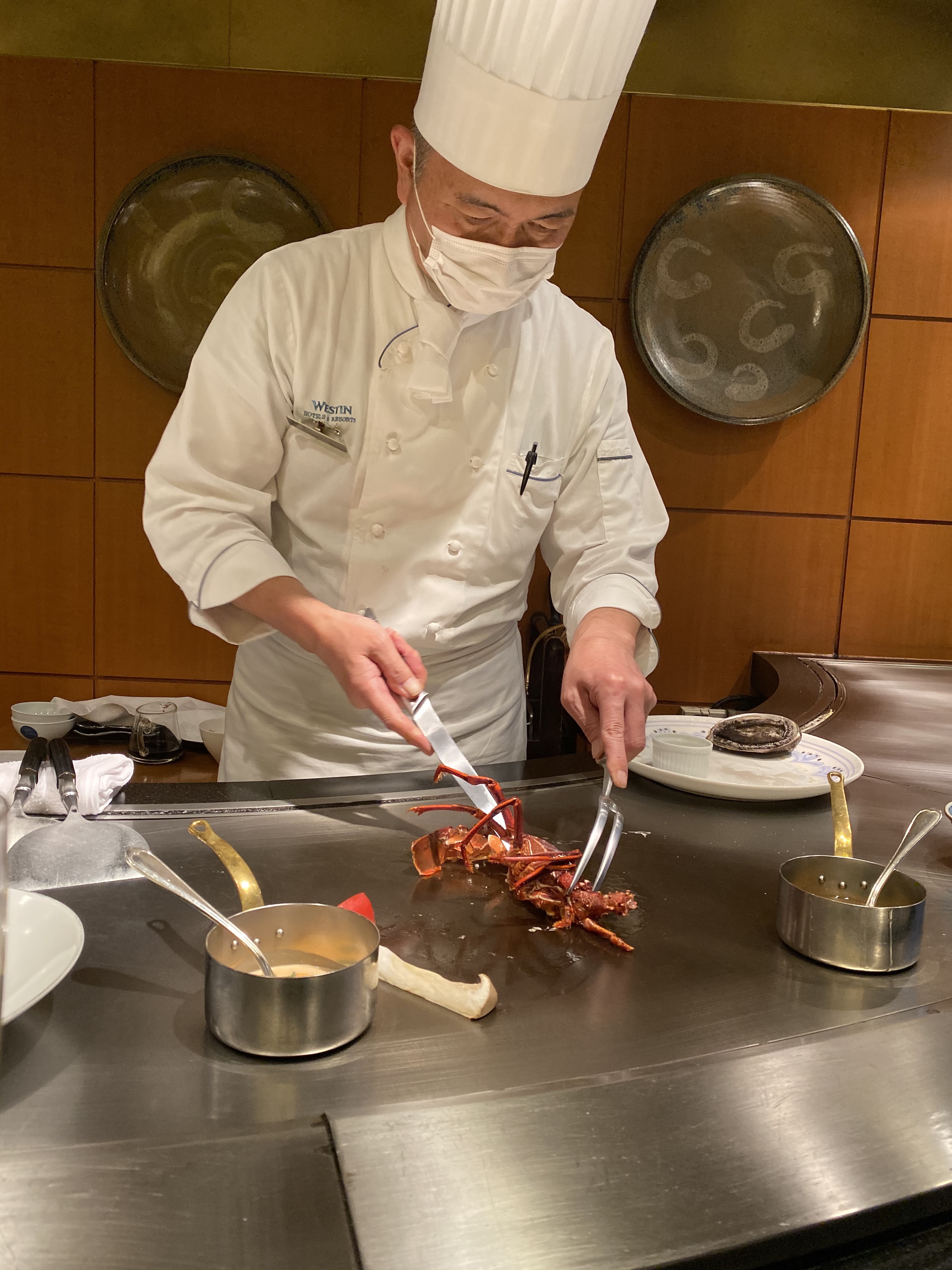 今回はウエスティンホテル内にある鉄板焼 「恵比寿」にて夕食を、