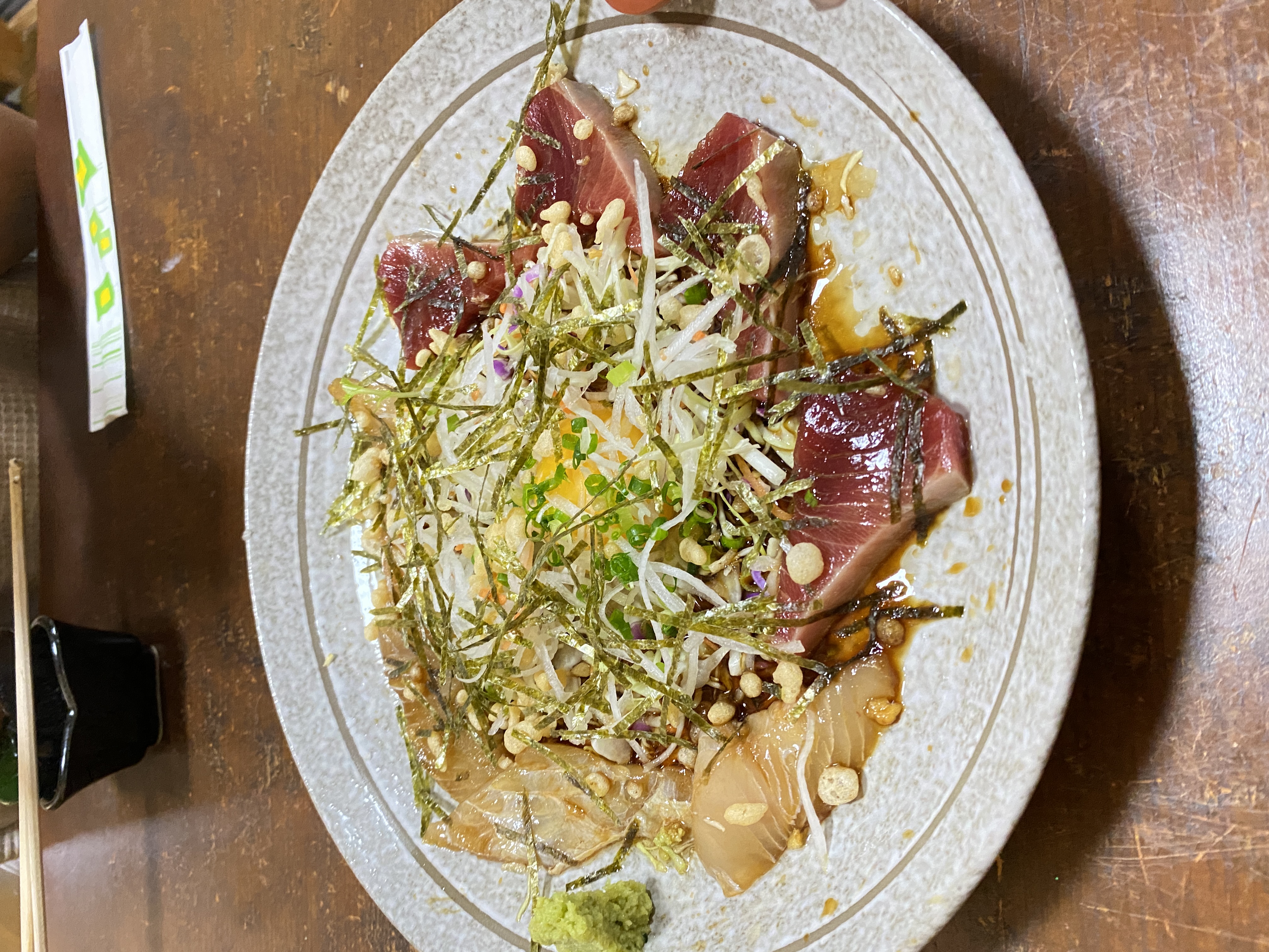 屋久島の名物という、トビウオの唐揚げ(写真左奥)がバリバリサクサクで美味しすぎました!