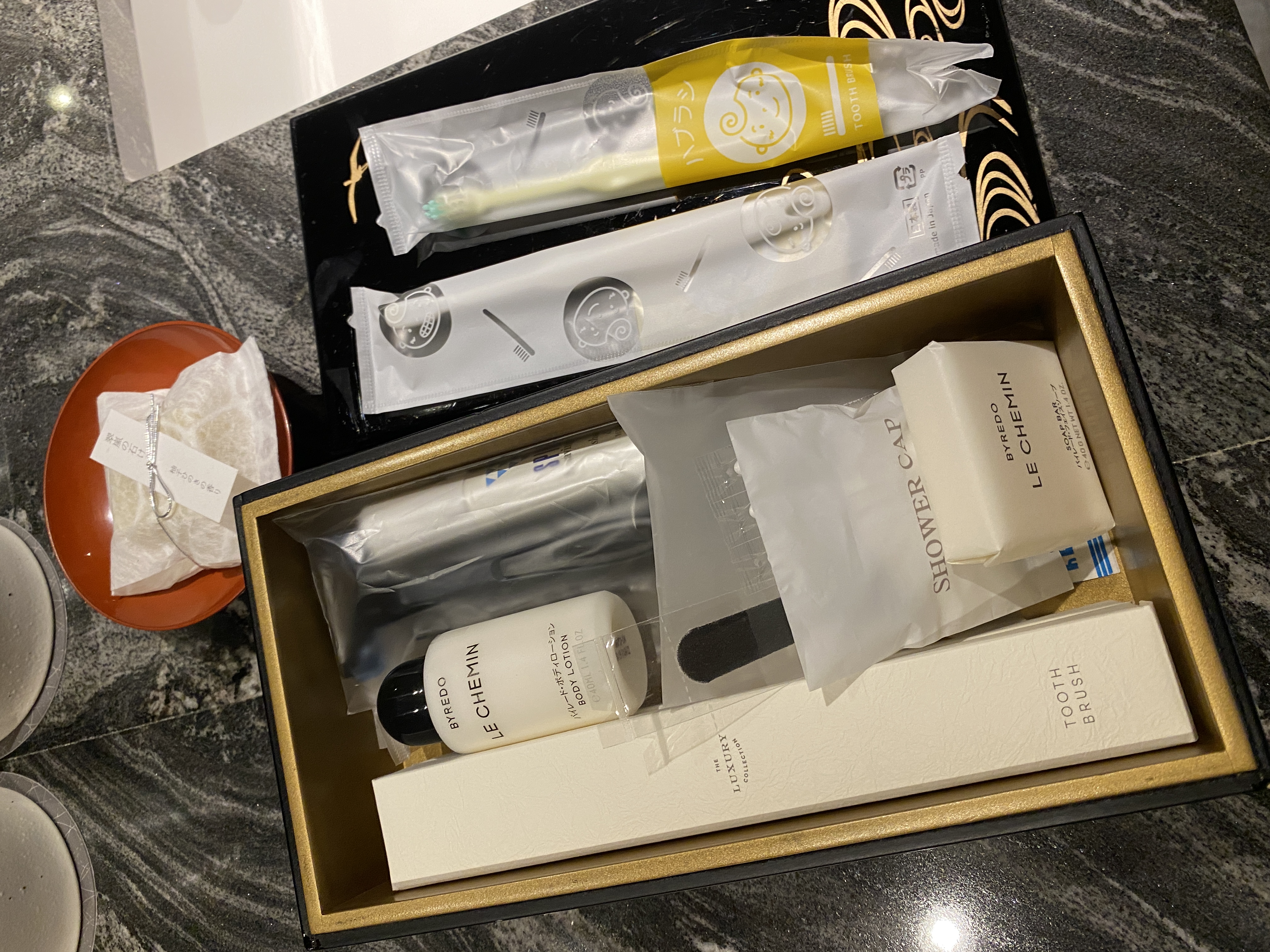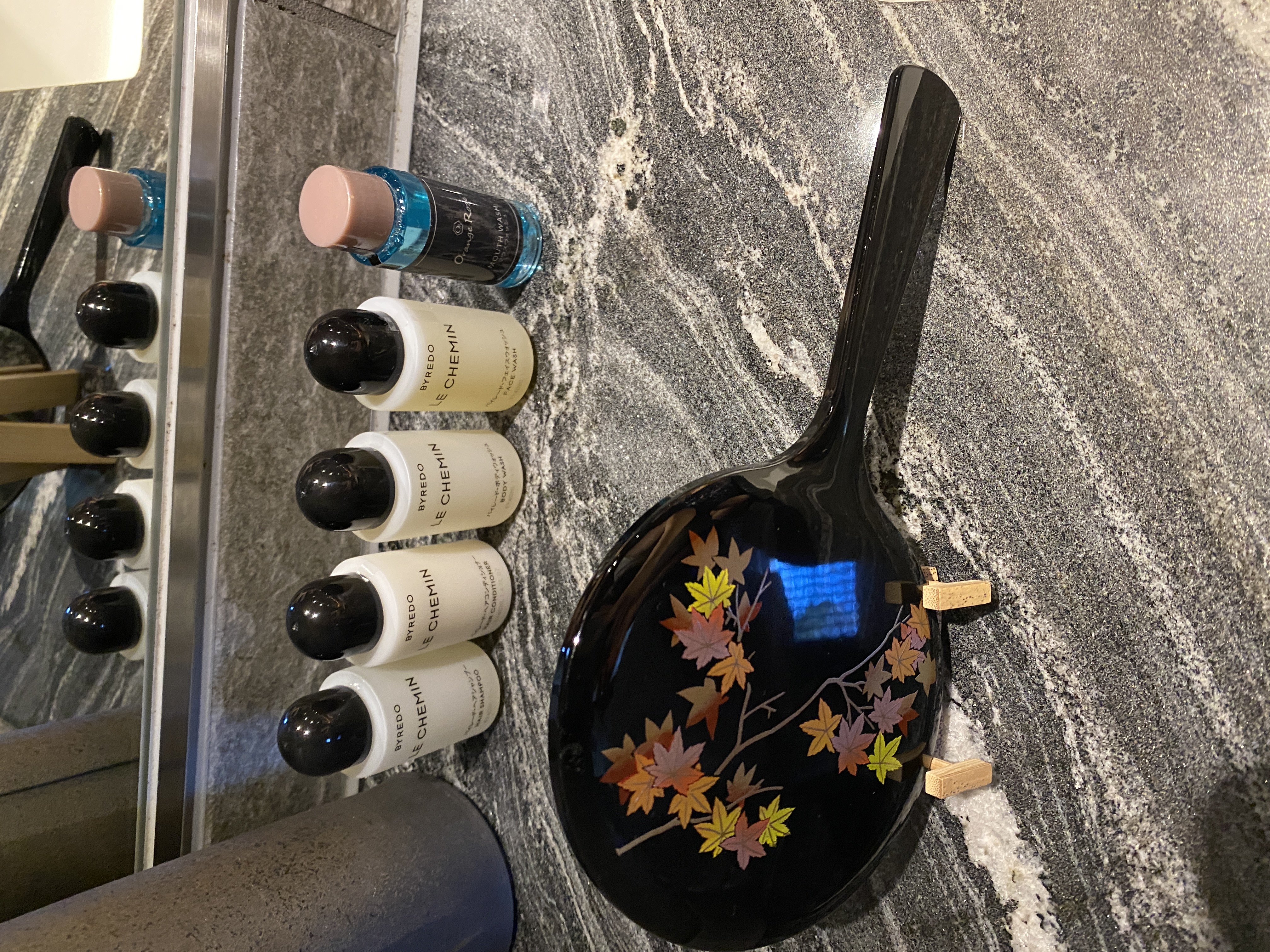 アメニティの入れ物や手鏡など、全てに和のモチーフになっており、なんだかすごく粋🇯🇵