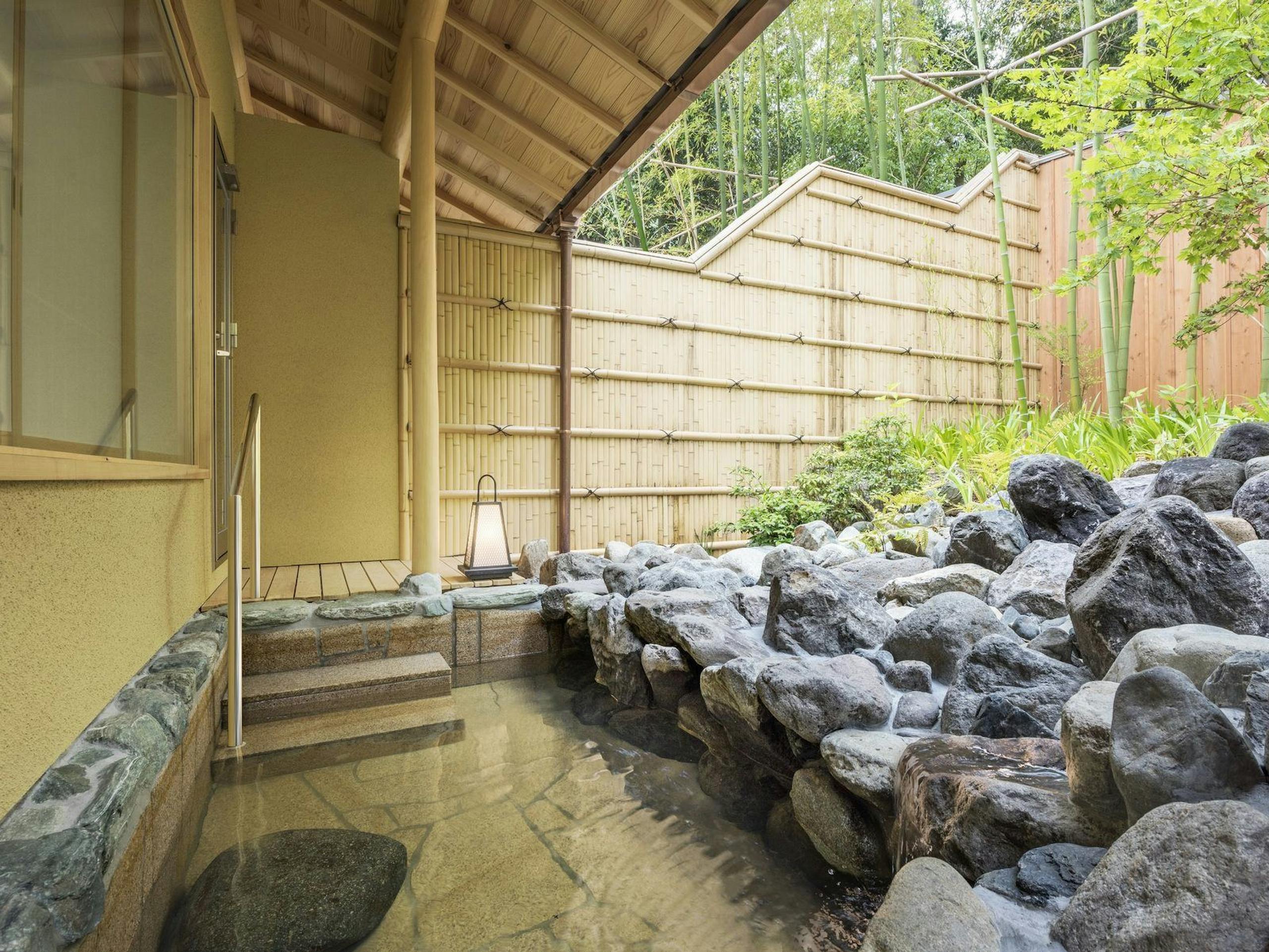 風流人が好んだ庵を想像させる佇まいの岩風呂「庵」の2つの貸切露天風呂があります。
