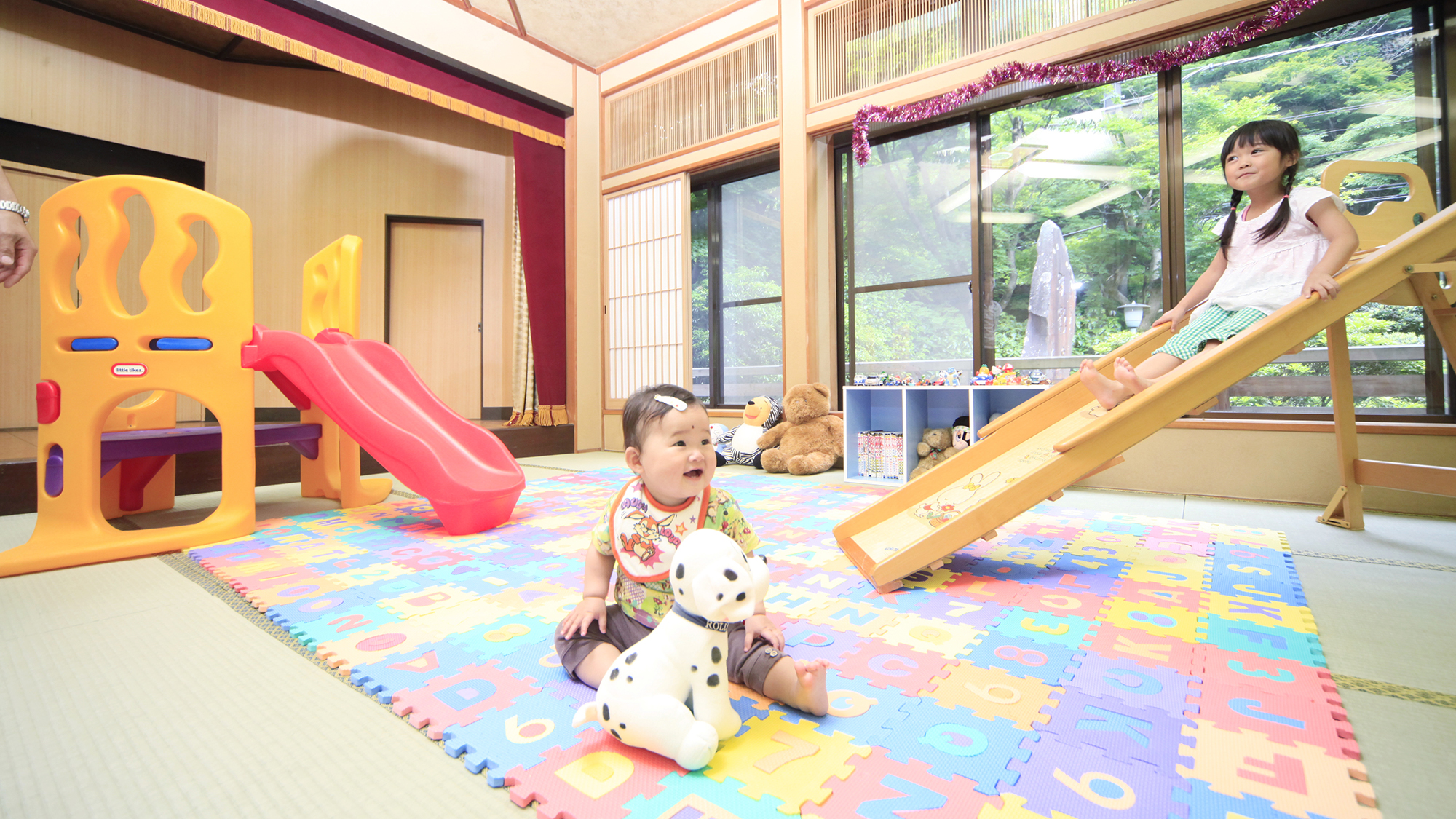✔︎ すべり台付き庭やおもちゃ完備の子連れ向け客室「庭」というお部屋があり、子連れ向けでも安心