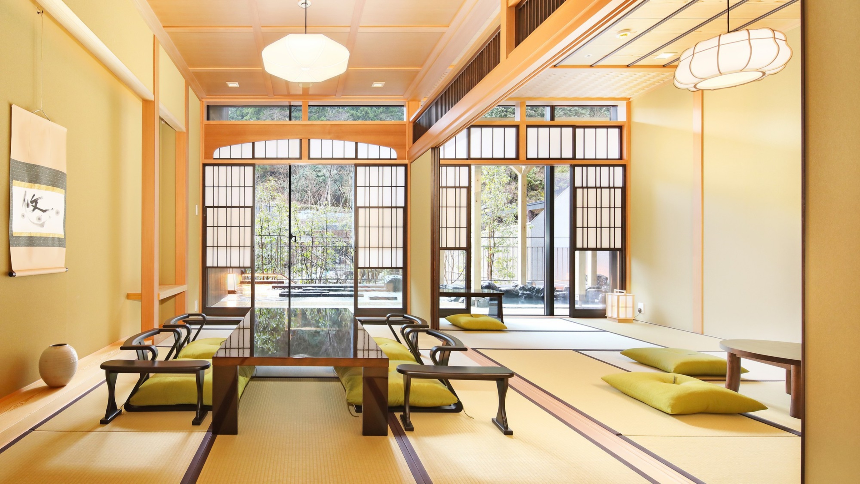 貸切露天風呂など7つの湯めぐりと数寄屋の和のしつらいに快適さを兼ね備えた客室、相模湾の海の幸を使った日本料理が楽しめる宿です。