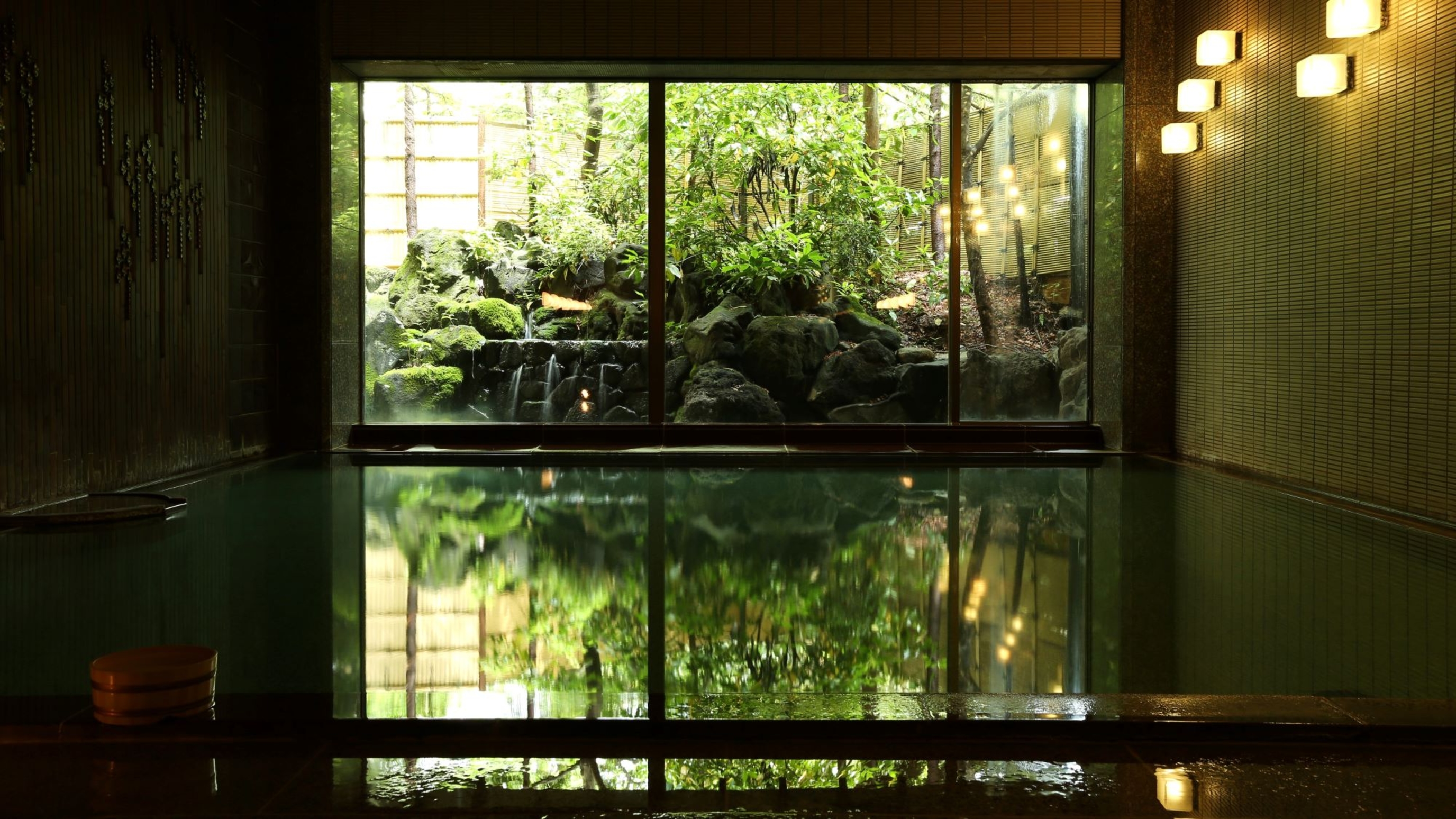 かけ流しの天然温泉は湯量が豊富で滝湯、大浴場、露天、無料の貸切家族風呂などお風呂の種類も豊富です。