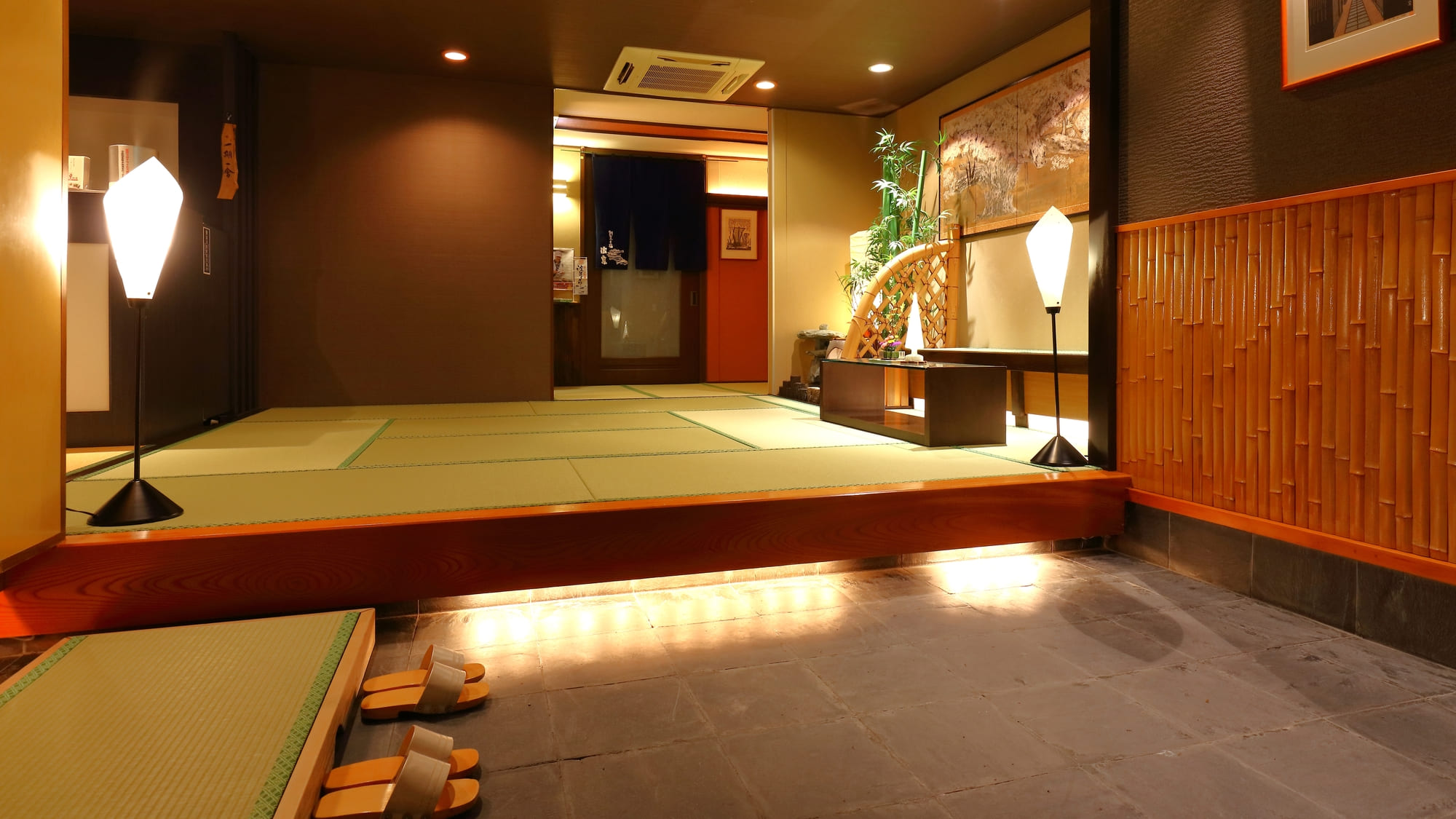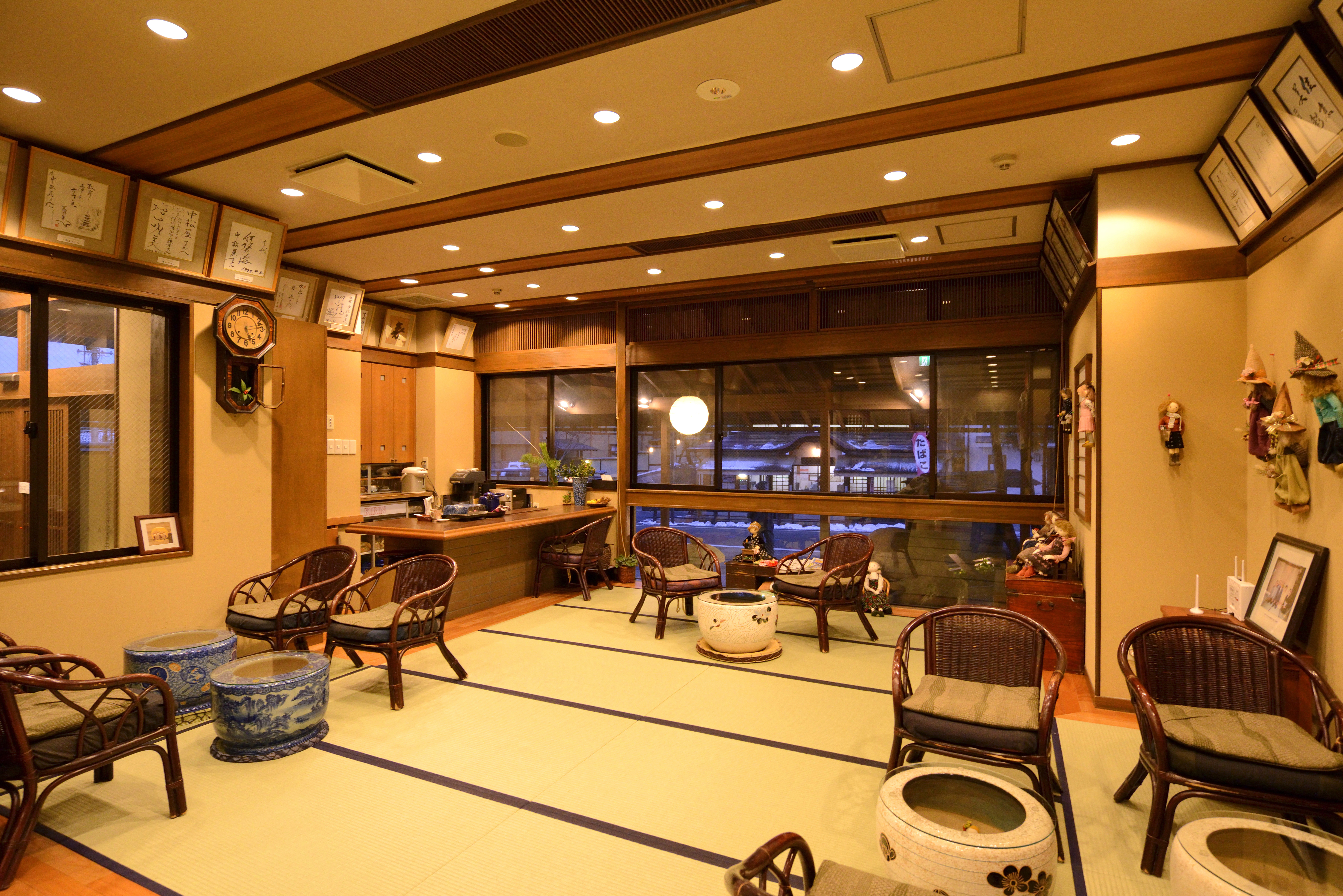 館内がすべて畳敷になっているので、玄関で靴を脱いで裸足でゆっくり過ごせるリラックスさ最高❣️