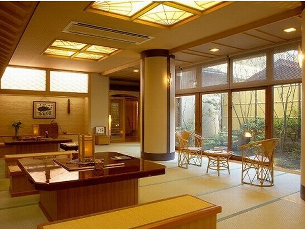 静かな庭園に囲まれた、館内の床すべてが畳敷きのシックな老舗温泉宿。